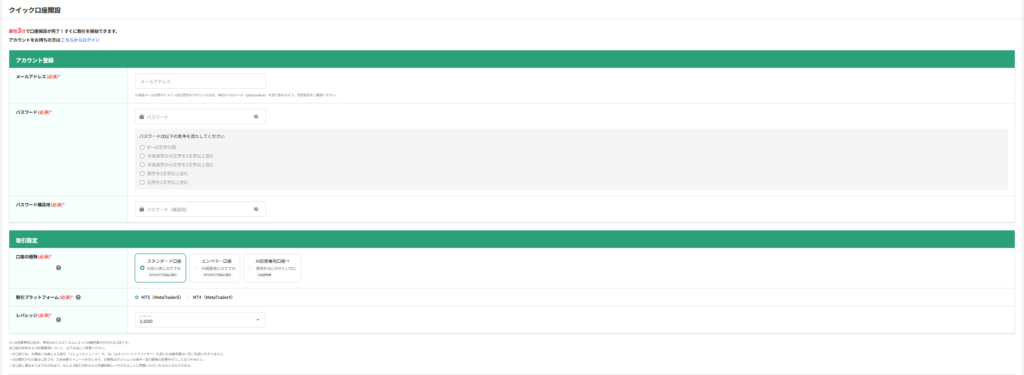 | レバレッジ | 1:1000 | 後で変更可能 |