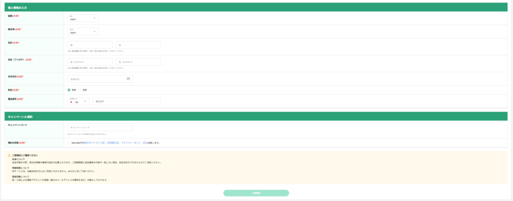 ここでは、公式の登録画面に沿って、実際の入力例も含めながら流れを詳しく解説します。