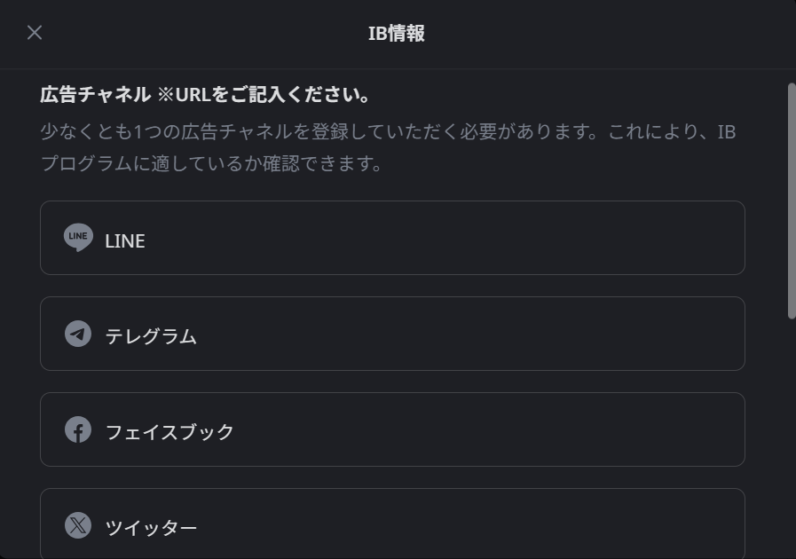 | 最大11ドルの高単価IB報酬が獲得できる 登録〜紹介リンク発行まで最短5分で完了 バイナリー・FX・ステーキング対応で訴求幅が広い サブIB報酬(10%/5%)で継続収益を作りやすい 毎日IB報酬が反映され副業でも続けやすい | 短時間決済(5分以内)は報酬対象外 クレジットのみの取引は無効 日本の金融庁未登録のため国内広告では注意が必要 |